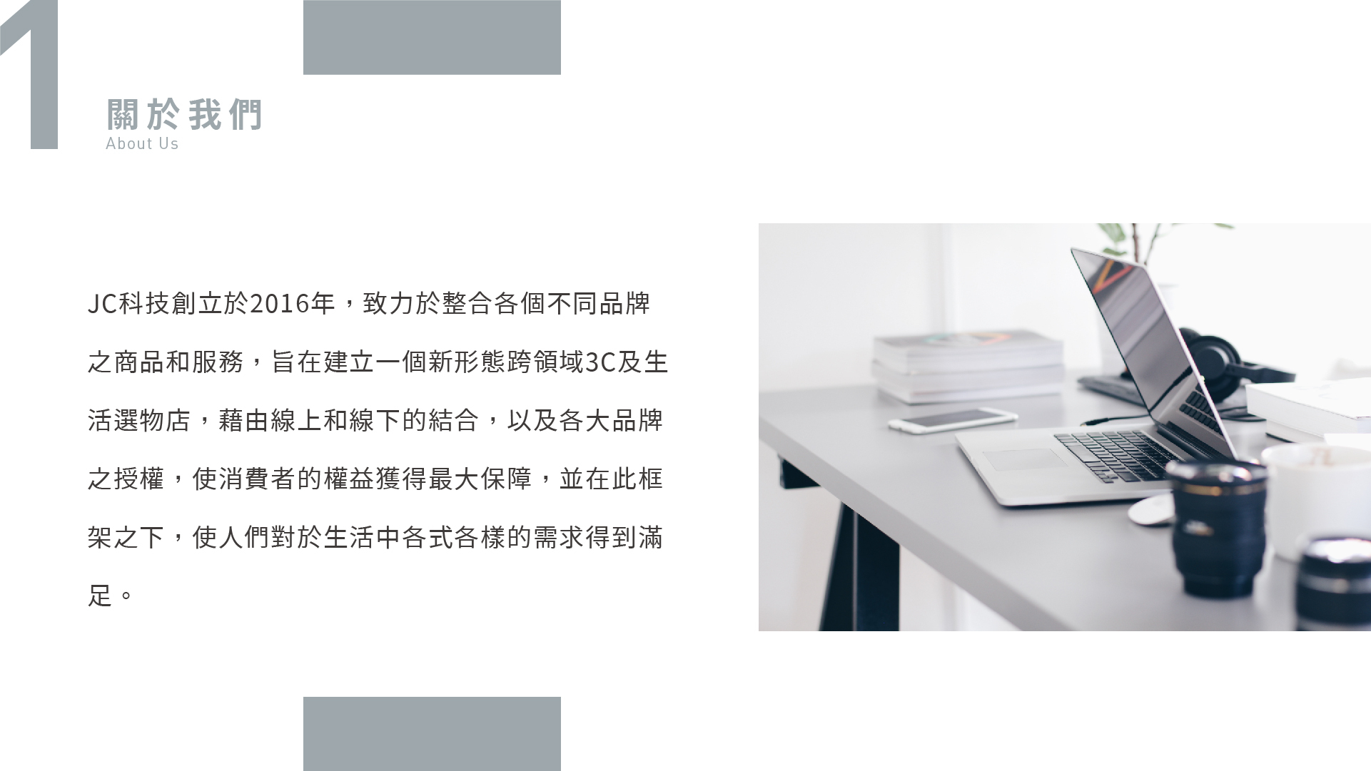JC科技成立於2016年,起初以3C選物店起家。經銷代理各大品牌,並逐漸跨足創意生活選物。