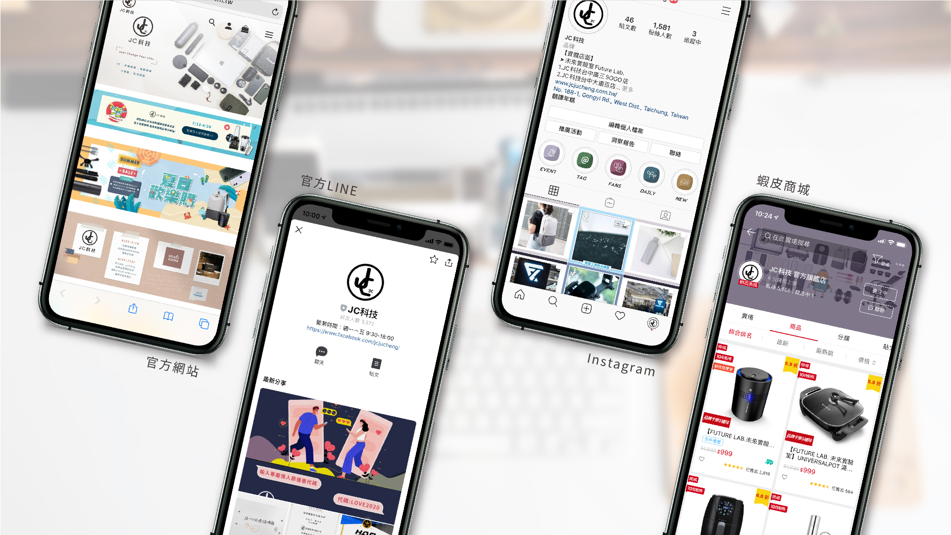 JC科技的社群網站,INSTAGRAM、FACEBOOK以及抖音等等,親切的小編與消費者共同互動,並於互動中真正了解消費者的需求,進而增進我們產品、服務的內容。