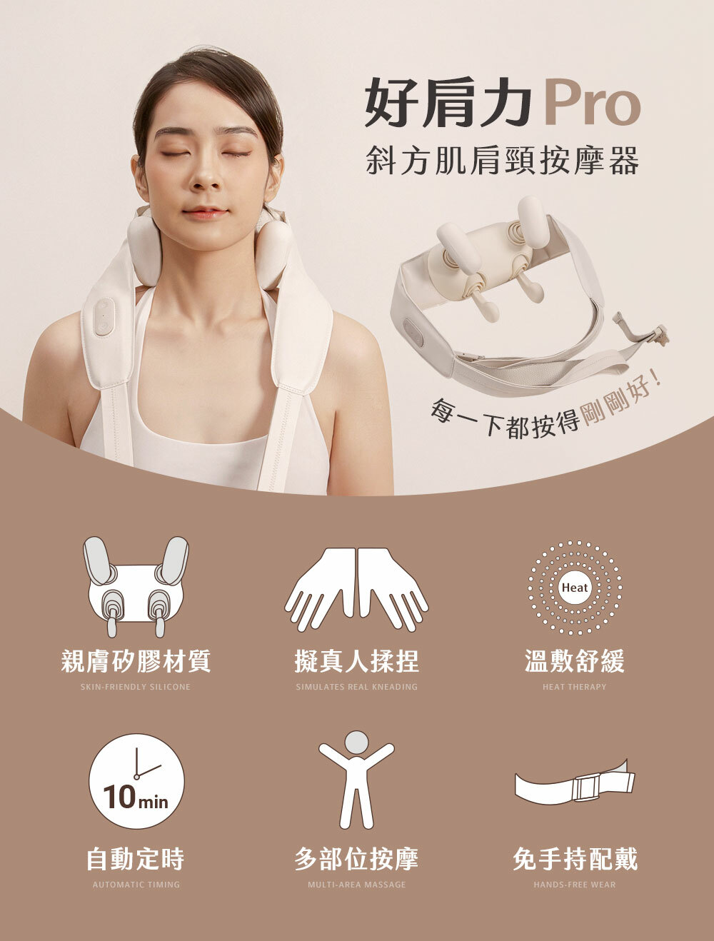 長時間低頭工作,肩頸僵硬、斜方肌緊繃?【好肩力Pro|斜方肌肩頸按摩器】專為舒緩肩膀壓力而設計,隨時隨地放鬆不適!