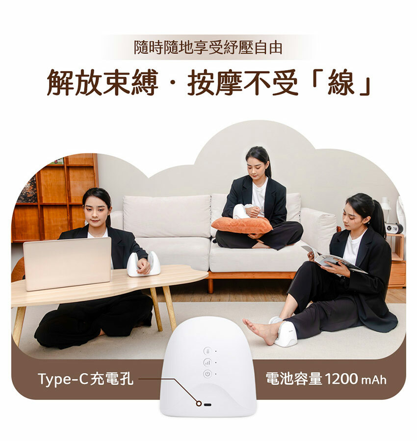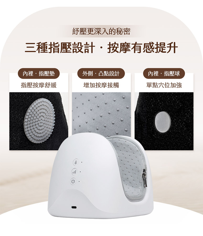 ❶ 氣壓雙側包覆夾揉,仿人手按摩體驗