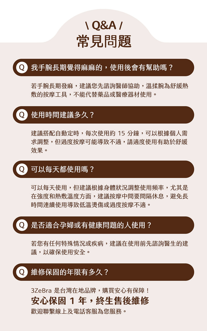 規 格 溫揉腕 x1、充電線 x1、說明書