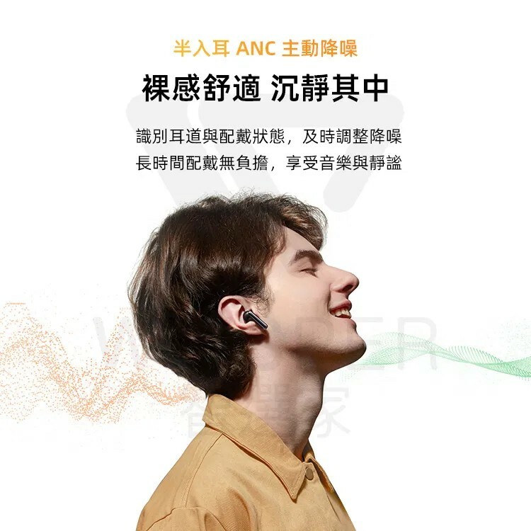 ● 半入耳 ANC 舒適沉靜|稀有半入耳式主動降噪,過濾環境噪音,同時保有絕佳舒適度