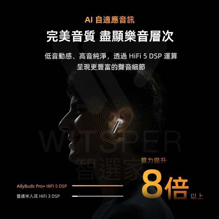 ● 智慧調節 平衡耳壓|由 AI 計算雙耳降噪量,提供不同程度的降噪,維持平衡,聽感更佳