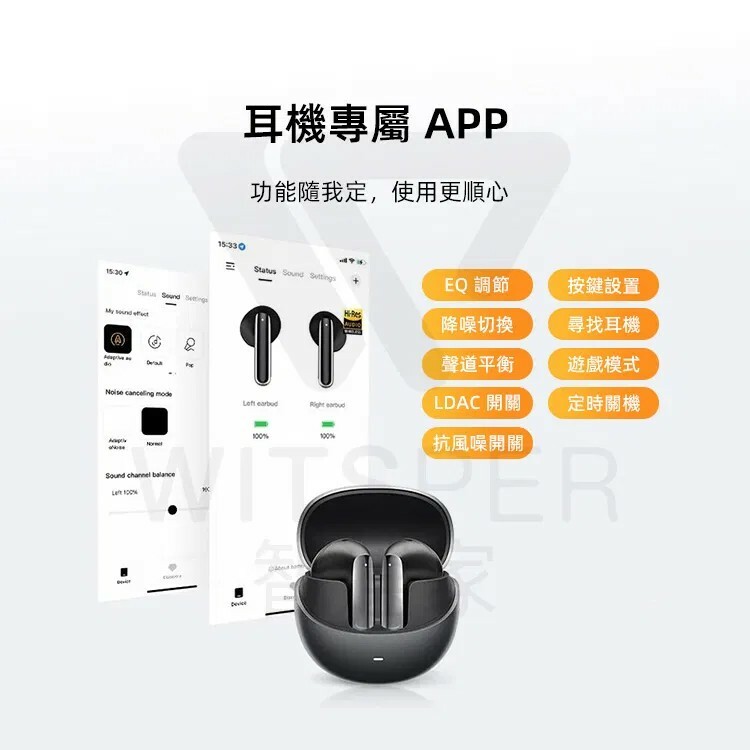 ● 智慧 APP 自由調整|APP 功能完整,隨喜好調整 EQ/降噪程度/左右聲道等,變成你喜歡的樣子