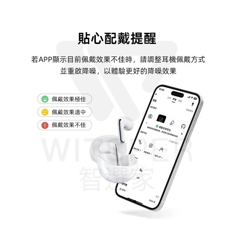 ● 配戴提醒 體驗升級|APP 貼心提醒使用者耳機配戴狀態,提升更好的降噪效果