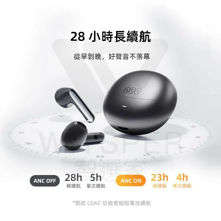 ●開降噪:單次聽歌4小時(通話約3小時),總續航23小時