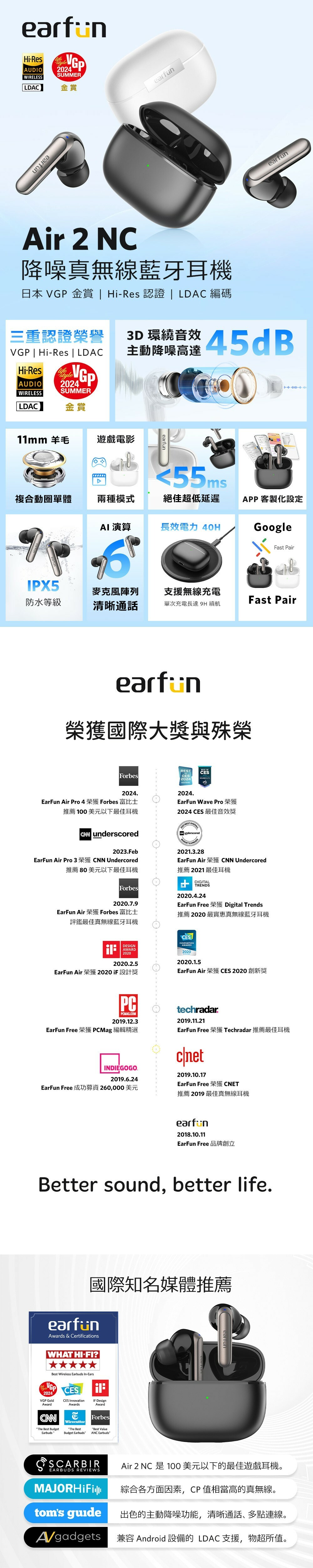• 產品名稱:EarFun Air 2 NC 降噪真無線藍牙耳機