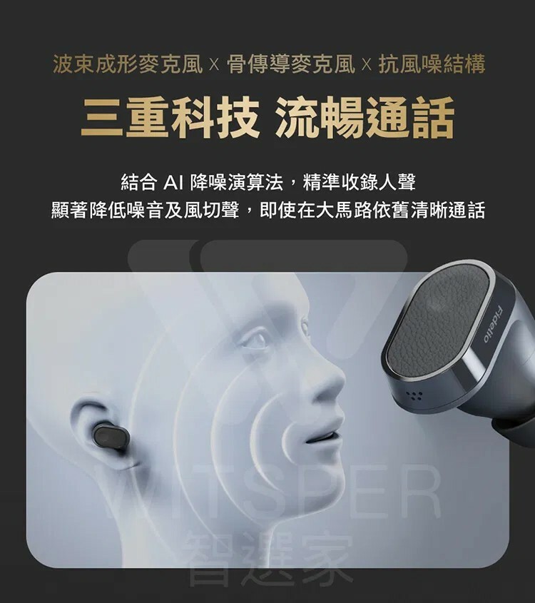 ● 三重科技 流暢通話|單耳兩個波束成形麥克風加上骨傳導麥克風,並結合AI降噪處理演算法,精準收錄立體人聲,壓制外在噪音、風切聲,即便身在大馬路旁仍能順暢通話