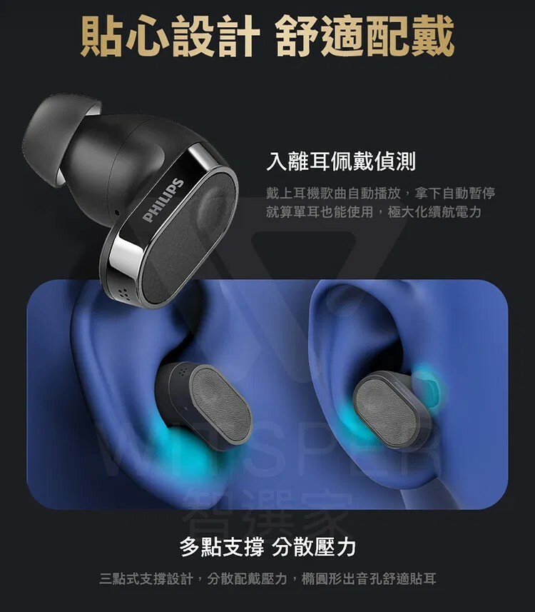 ● 智慧感應 配戴偵測|支援入離耳佩戴偵測,戴入耳內歌曲自動播放,拿下耳機便自動暫停音樂,極大化續航電力,就算單耳也能使用