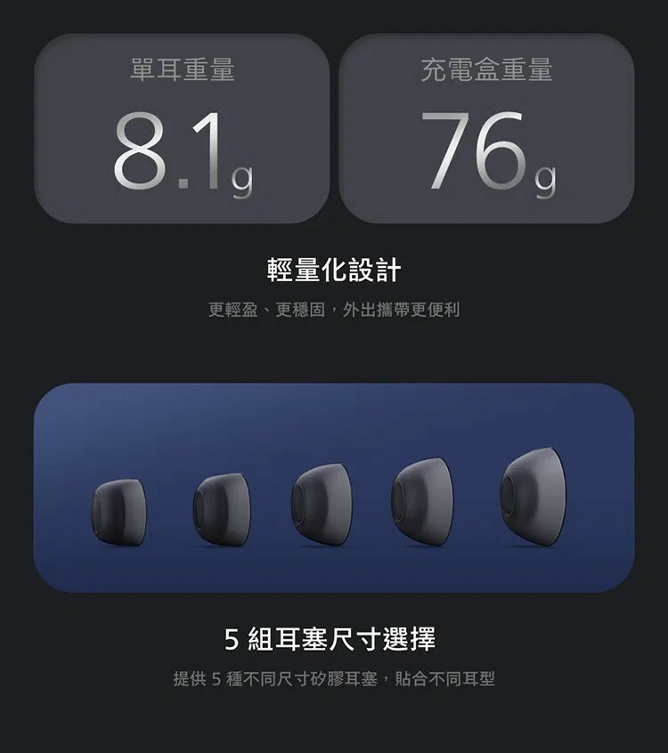 ● 耳機尺寸:2.16 x 2.65 x 2.65 cm