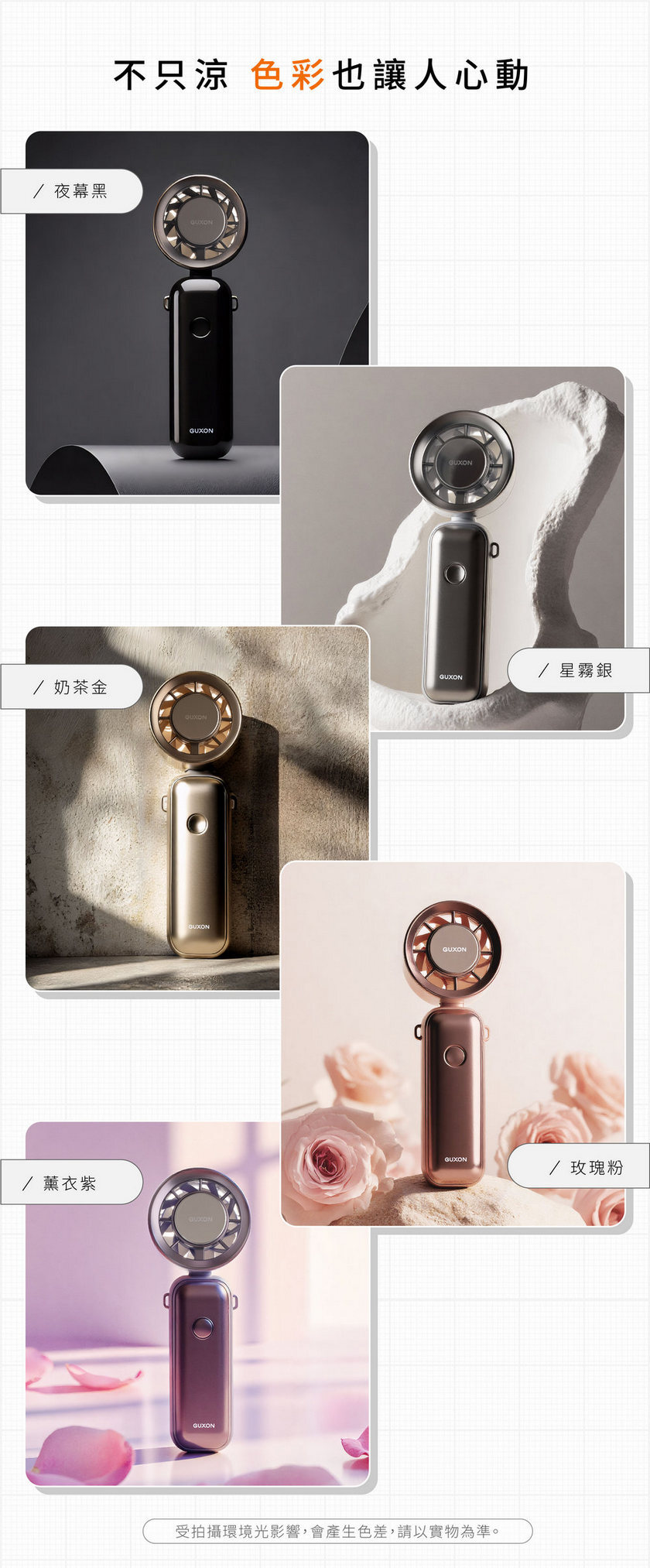 ✔ 五色可選外型質感|夜幕黑、星霧銀、奶茶金、薰衣紫、玫瑰粉,質感滿分