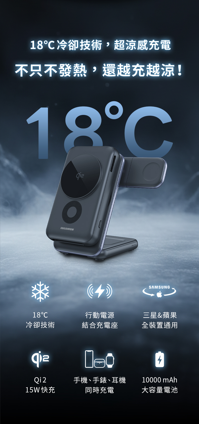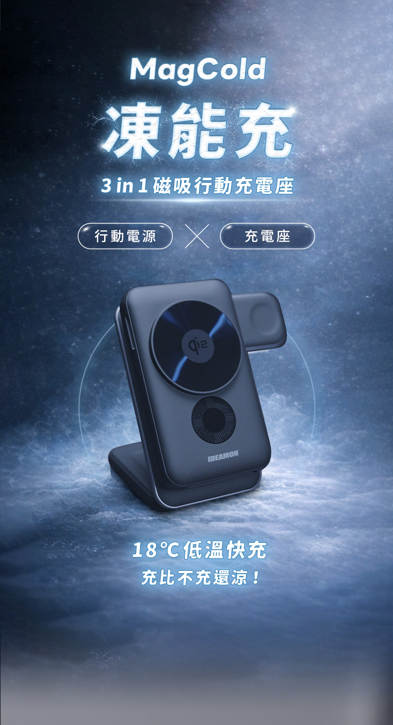 產品名稱:MagCold 凍能充 3 in 1 無線磁吸行動充電座/行動電源