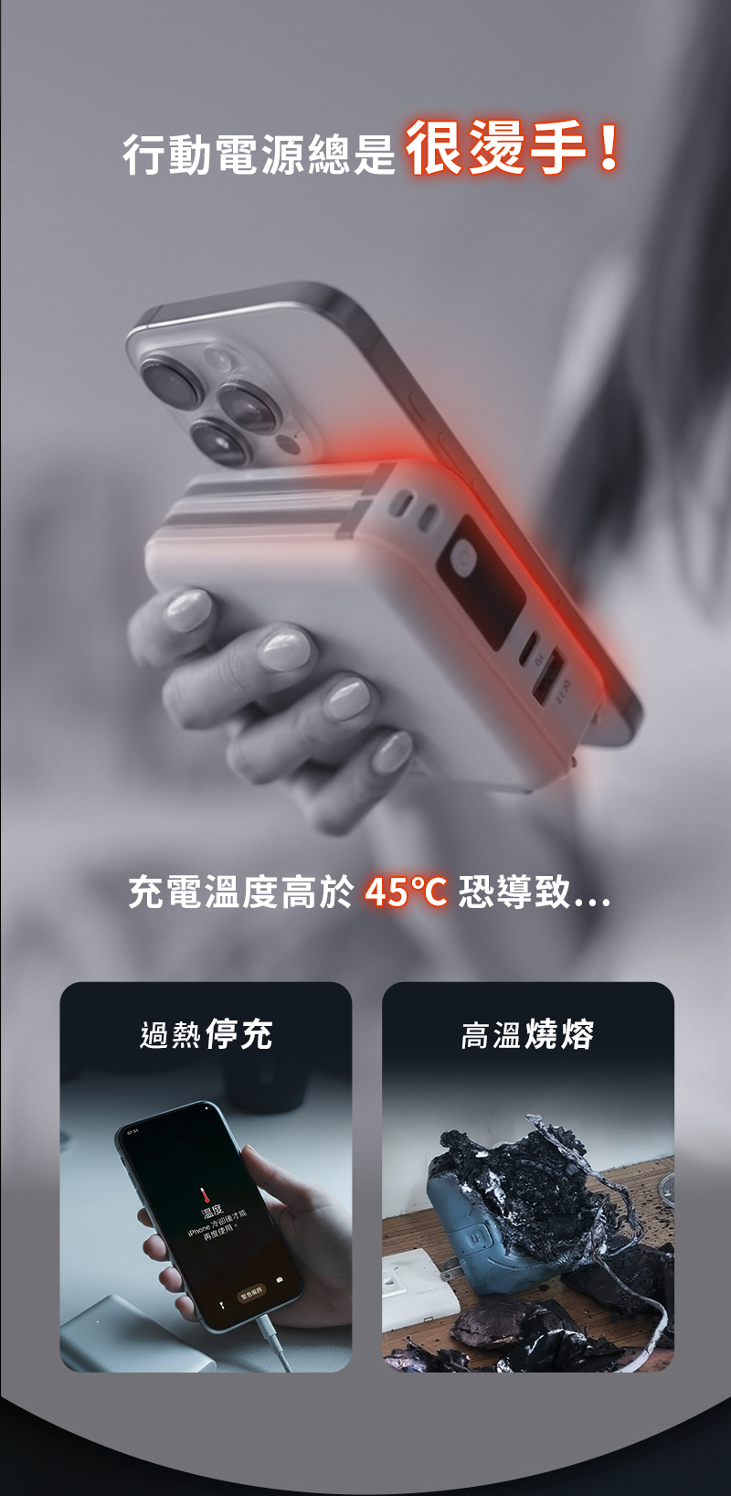 ⚡️ 18℃ 低溫快充|主動降溫模組,比一般行動電源涼且更安全