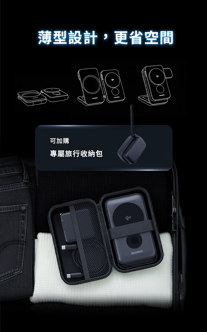 類型:行動電源 + 無線充電座 三合一