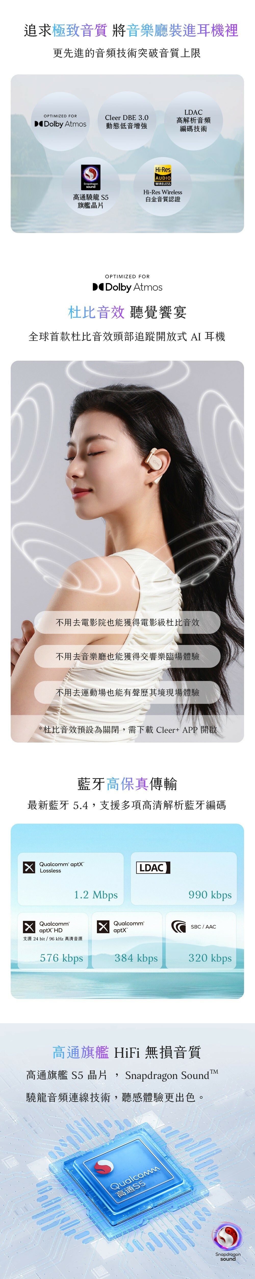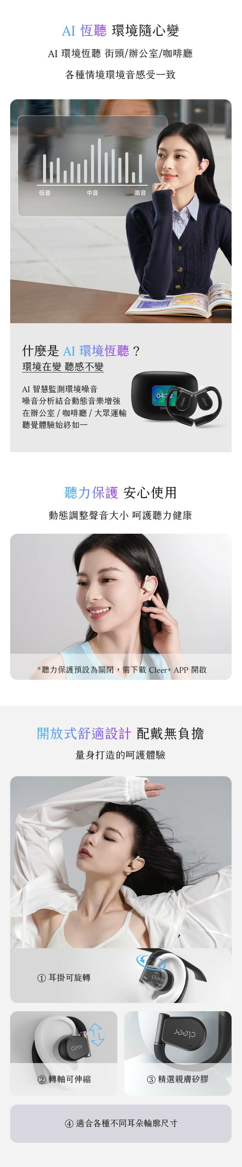 ● 產品名稱:Cleer ARC 3 開放式AI真無線藍牙耳機 (音樂版)