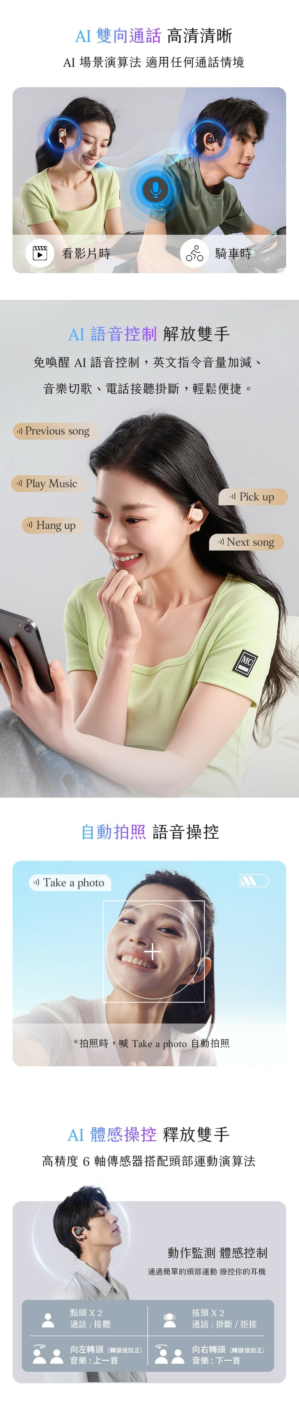 ● 操控模式:觸控 / 體感 /語音 控制耳機 (點頭 / 搖頭 / 轉頭)