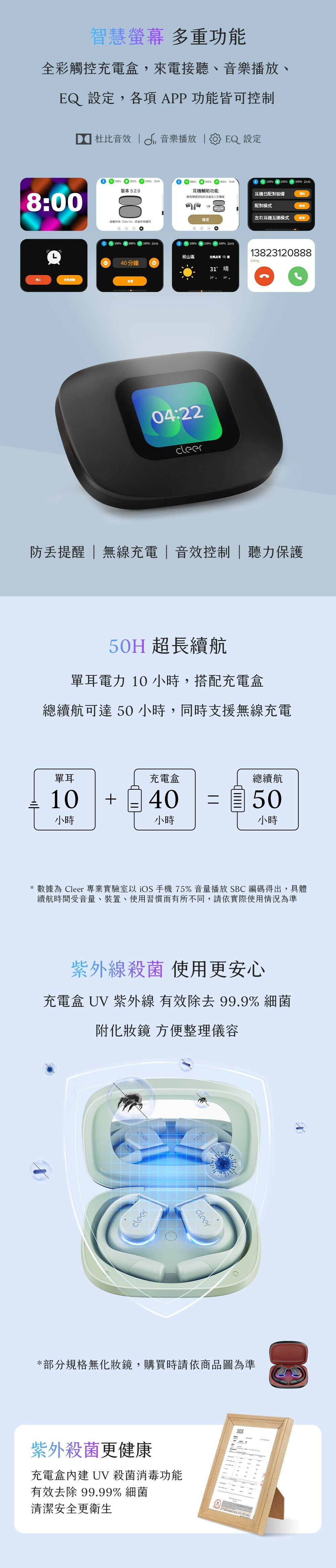 ●  殺菌消毒|充電盒內建UV紫外線消毒燈,99.9%殺菌率