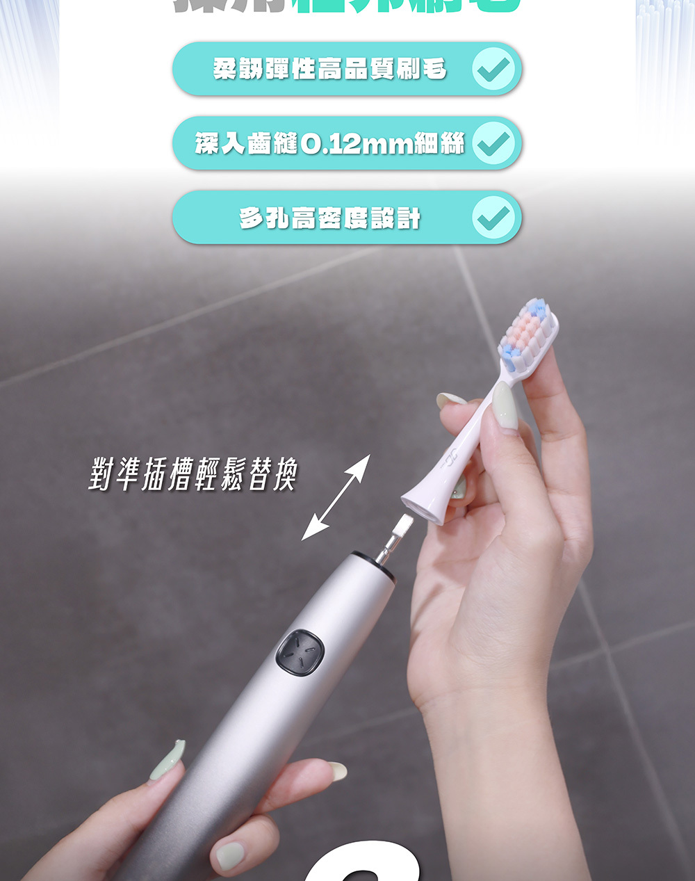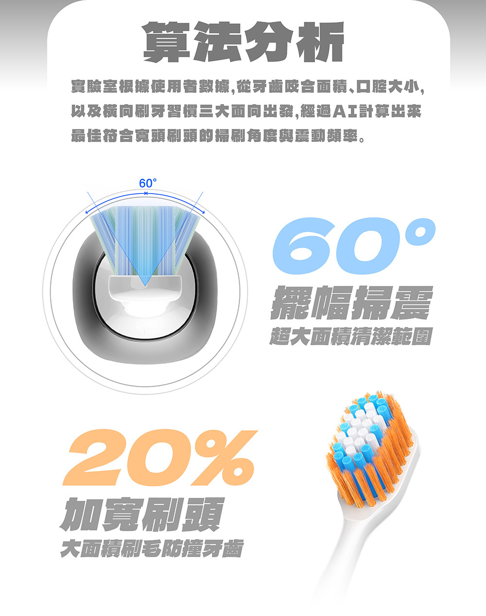 加寬刷頭有效降低撞擊機率,提升舒適感,每一次清潔都更安心。