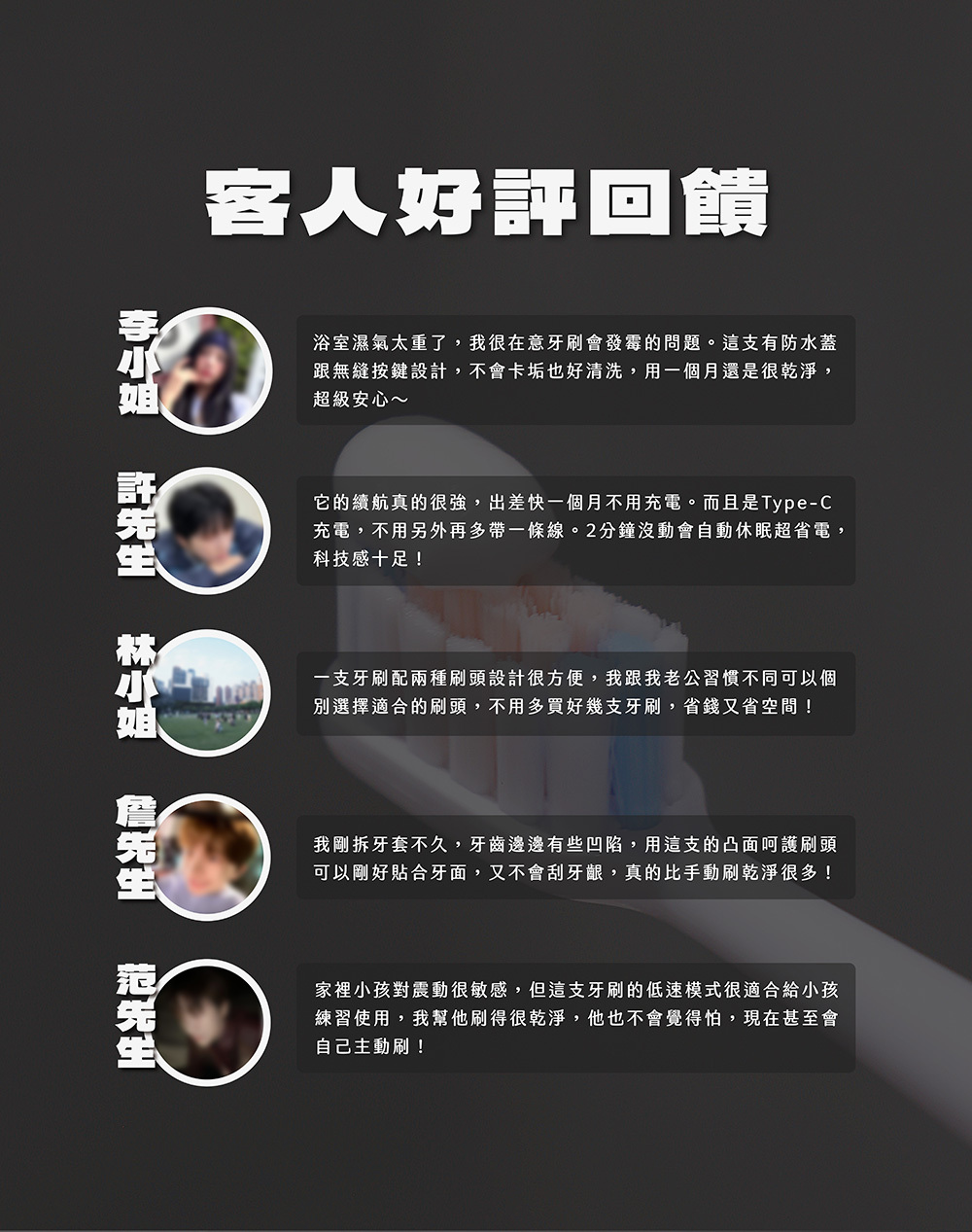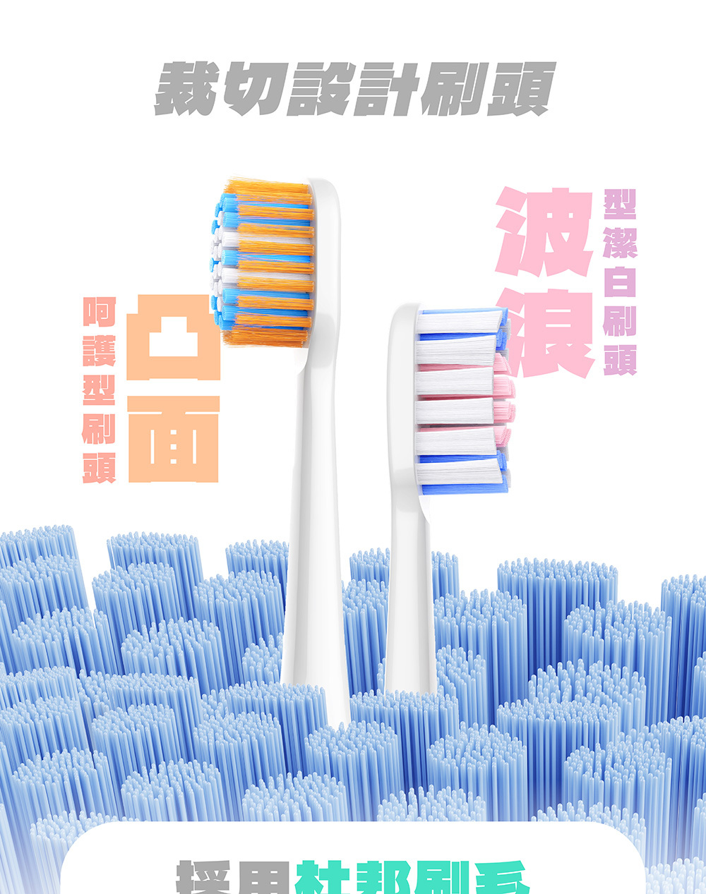選用高品質杜邦刷毛,刷毛彈性佳、抗磨損,持久清潔力再升級。