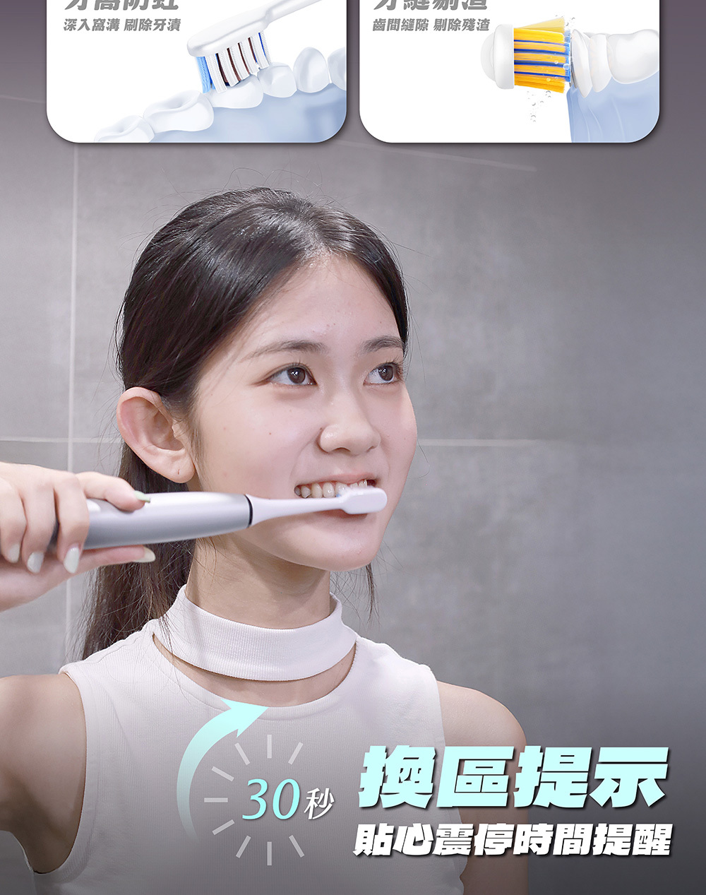 從日常清潔到深層護理,一鍵切換四段掃振強度,精準掌控,每一種齒齦狀況都能輕鬆應對。