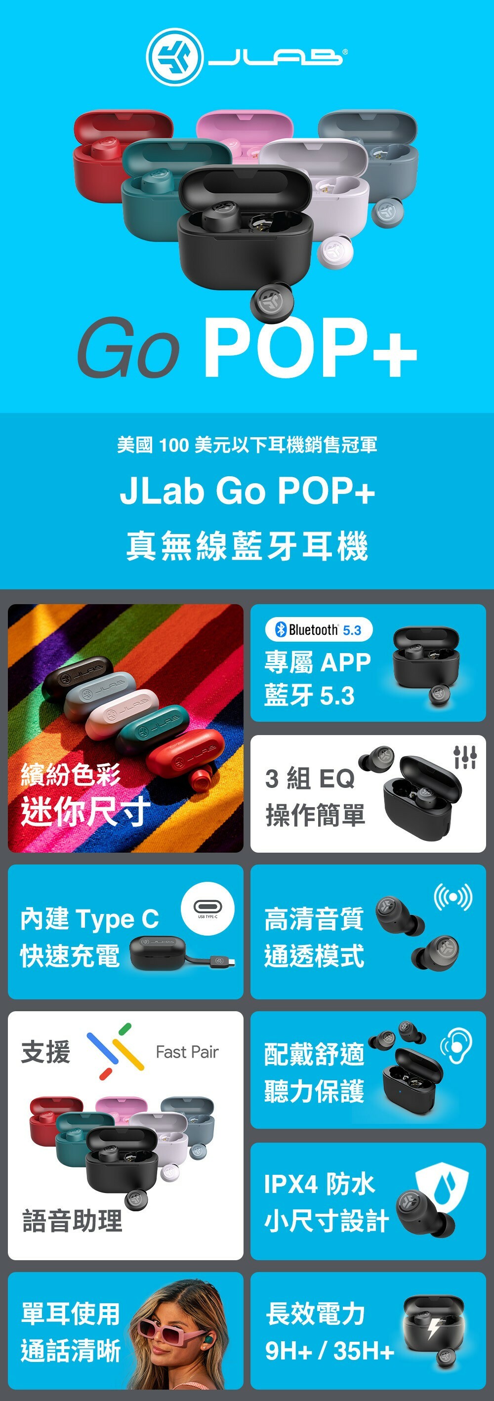 - 產品型號:JLab Go POP+真無線藍牙耳機