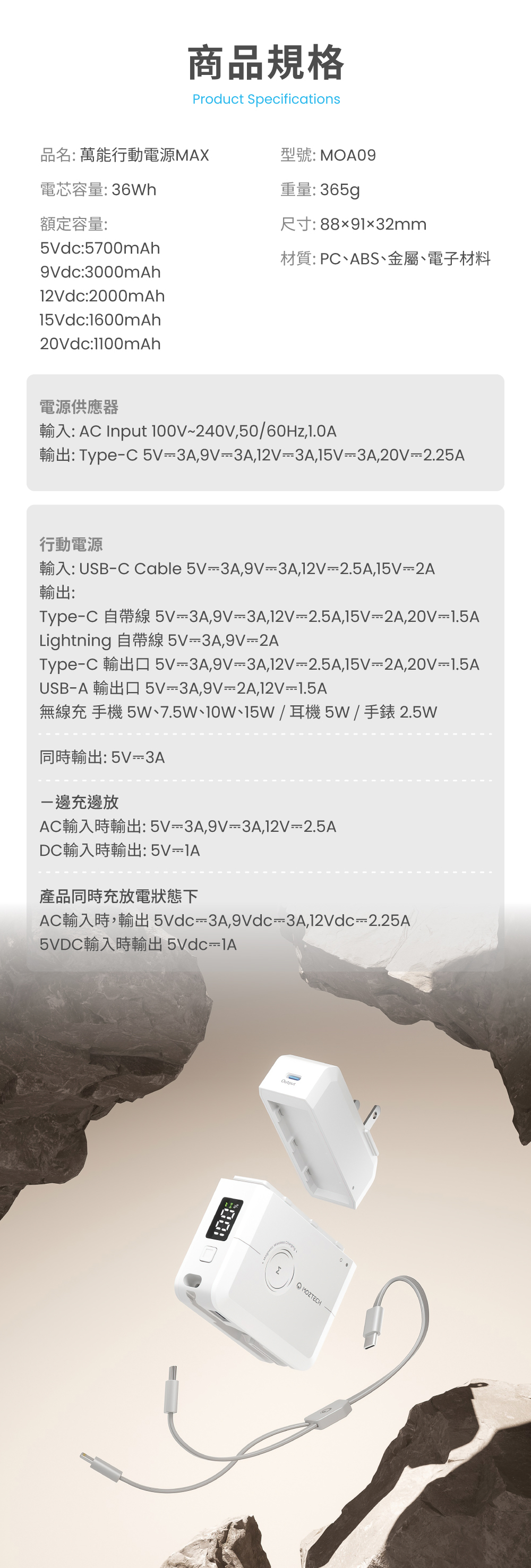 【MOZTECH®】萬能充MAX 多功能行動電源