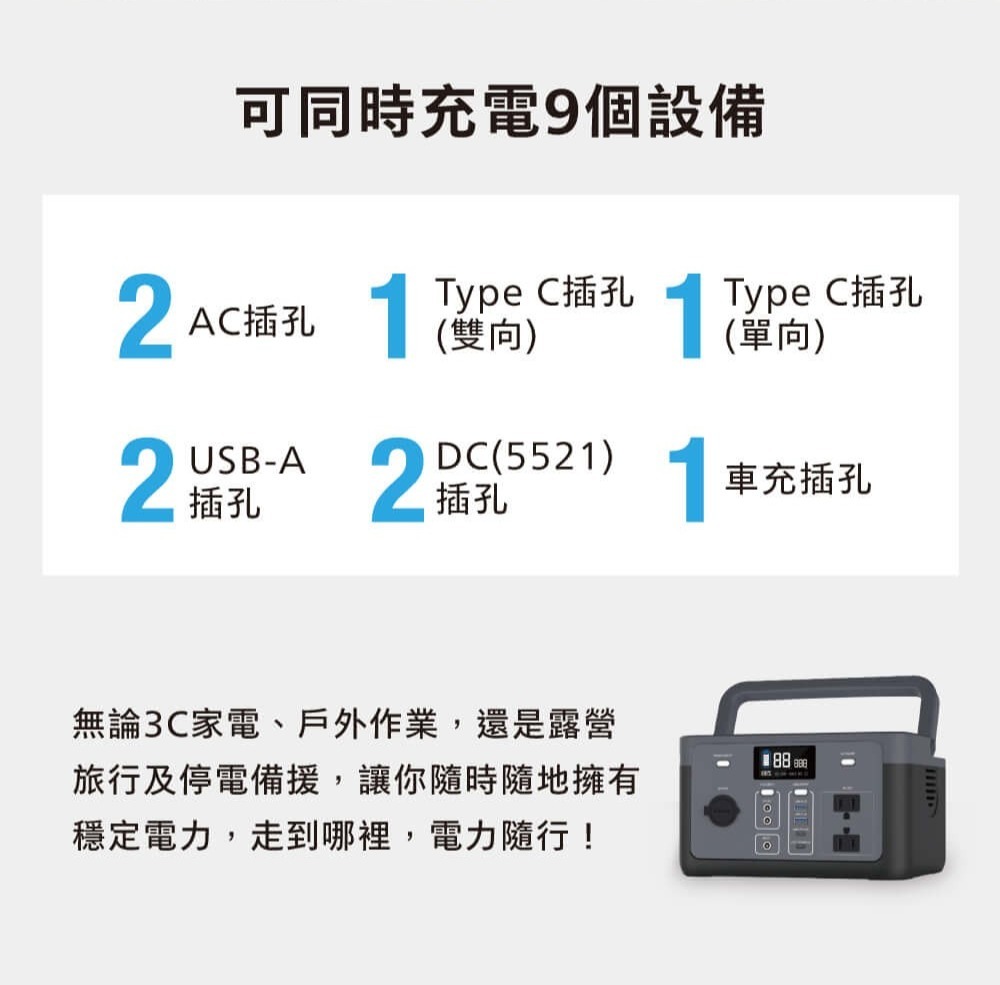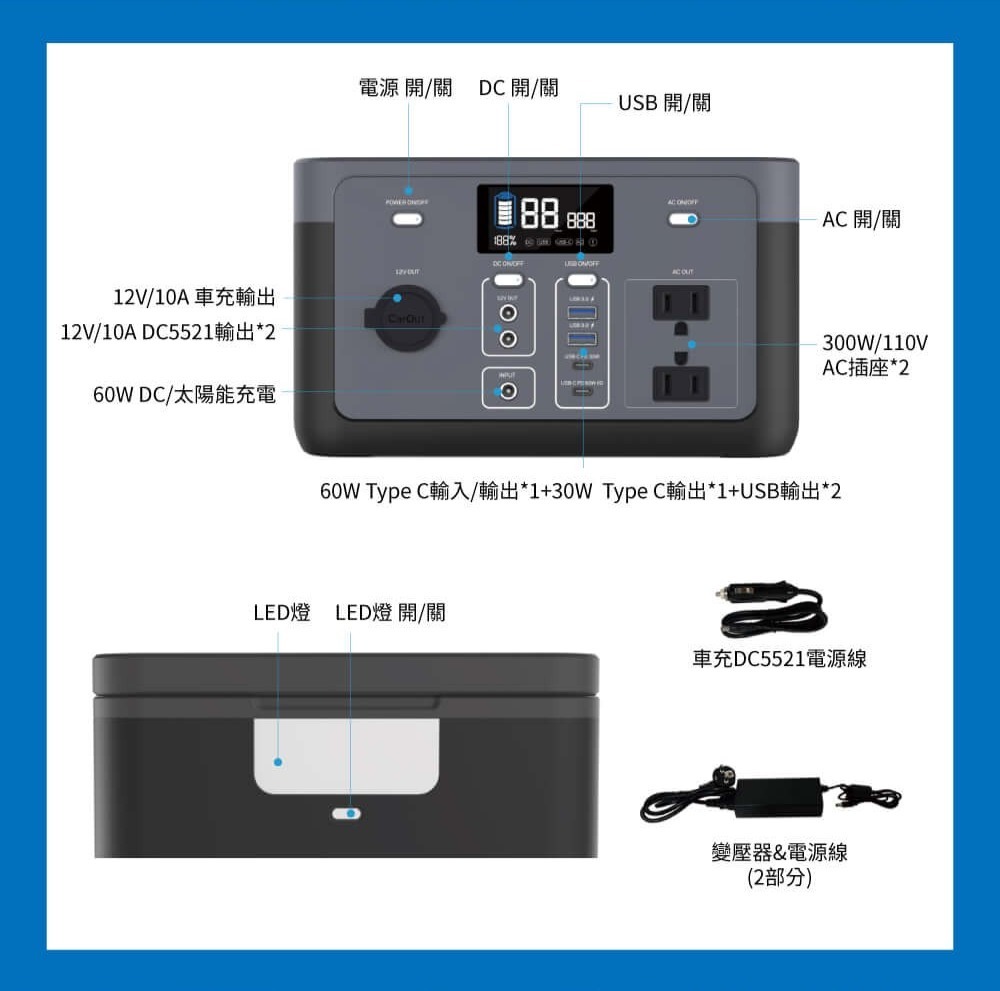 ⚡輸出功率300W/256Wh,完美支援小功率家電