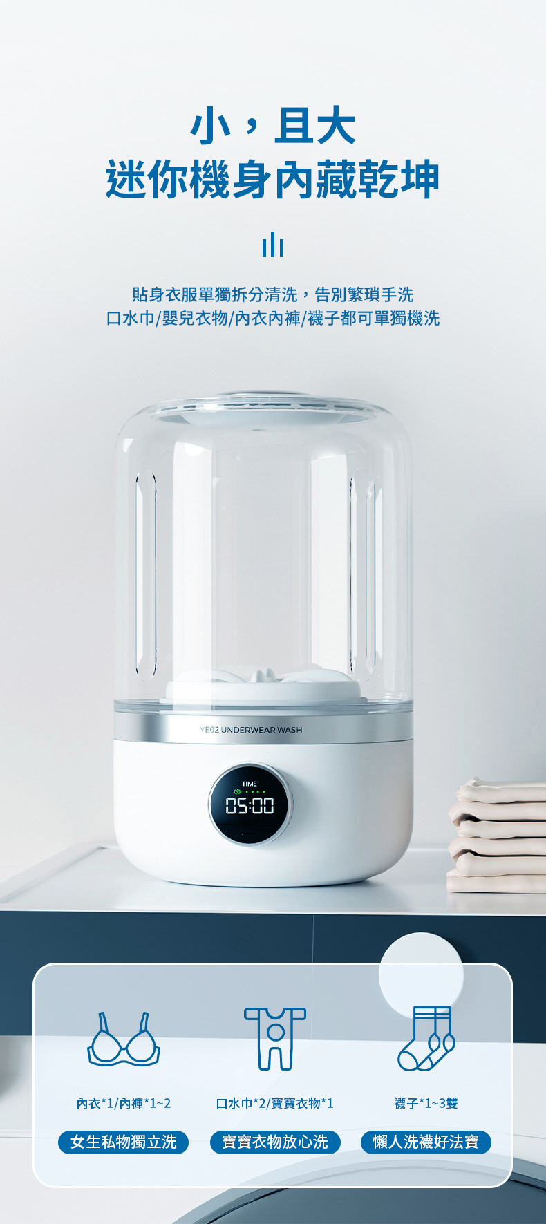 便捷快速清洗,小件衣物即洗即穿,省時省力