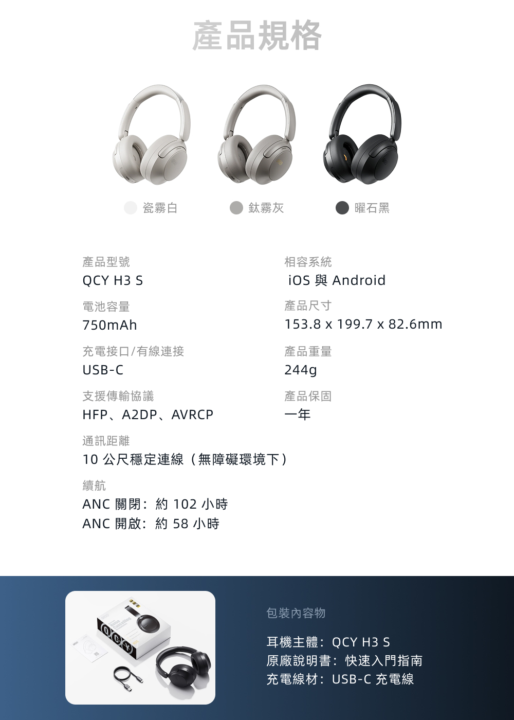 產品名稱:QCY H3 S 降噪藍牙耳罩式耳機