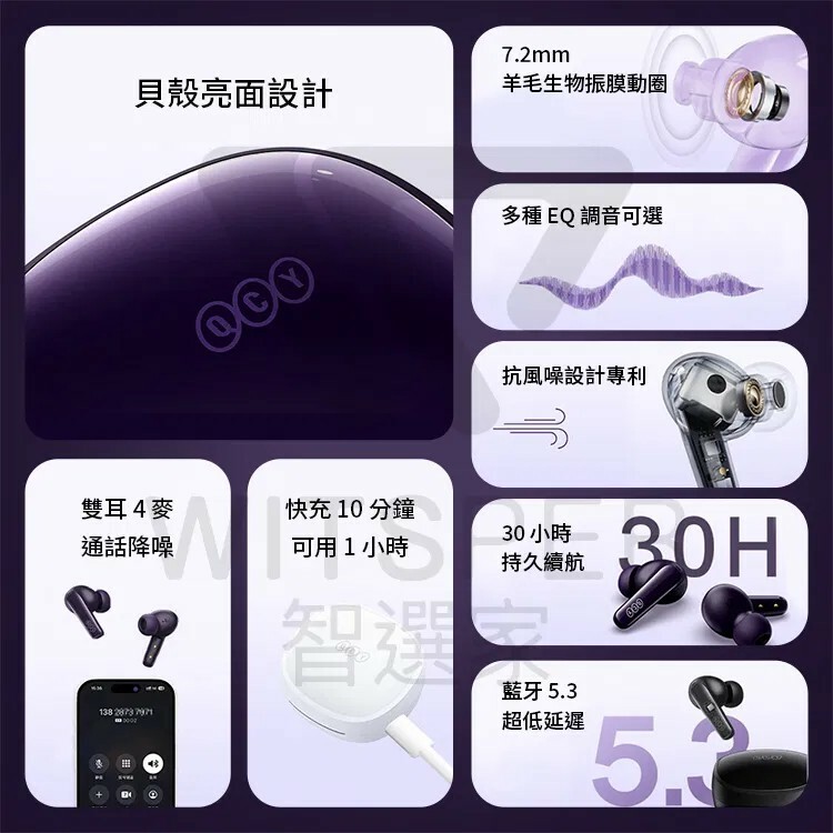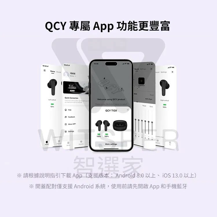 ● 支援App 客製操作|連結QCY App,可針對操作手勢、EQ音效等功能自由調整,操作更便利
