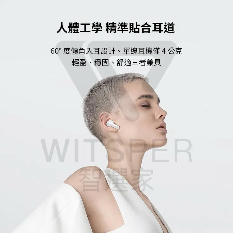 ● 人體工學 貼耳舒適|60°度傾角入耳設計、單邊耳機僅4公克,輕盈、穩固、舒適三者兼具