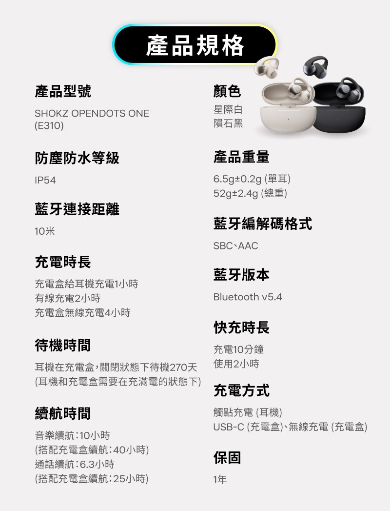 【SHOKZ】OpenDots ONE E310 開放式耳夾藍牙耳機