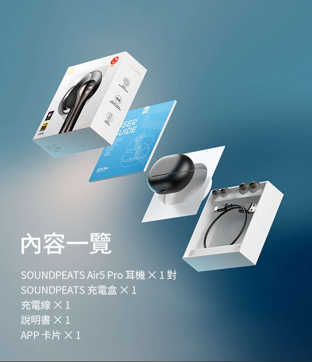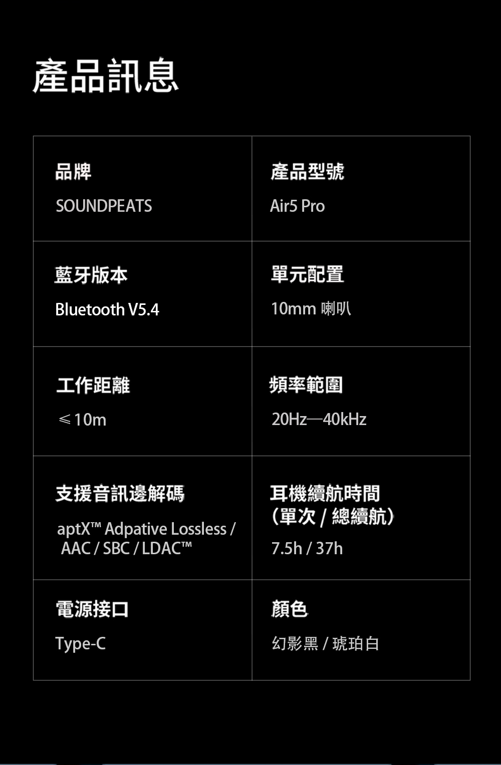 【SOUNDPEATS】Air 5 Pro 無線耳機|-55dB AI 自適應降噪 x aptX™ Lossless 高音質解析