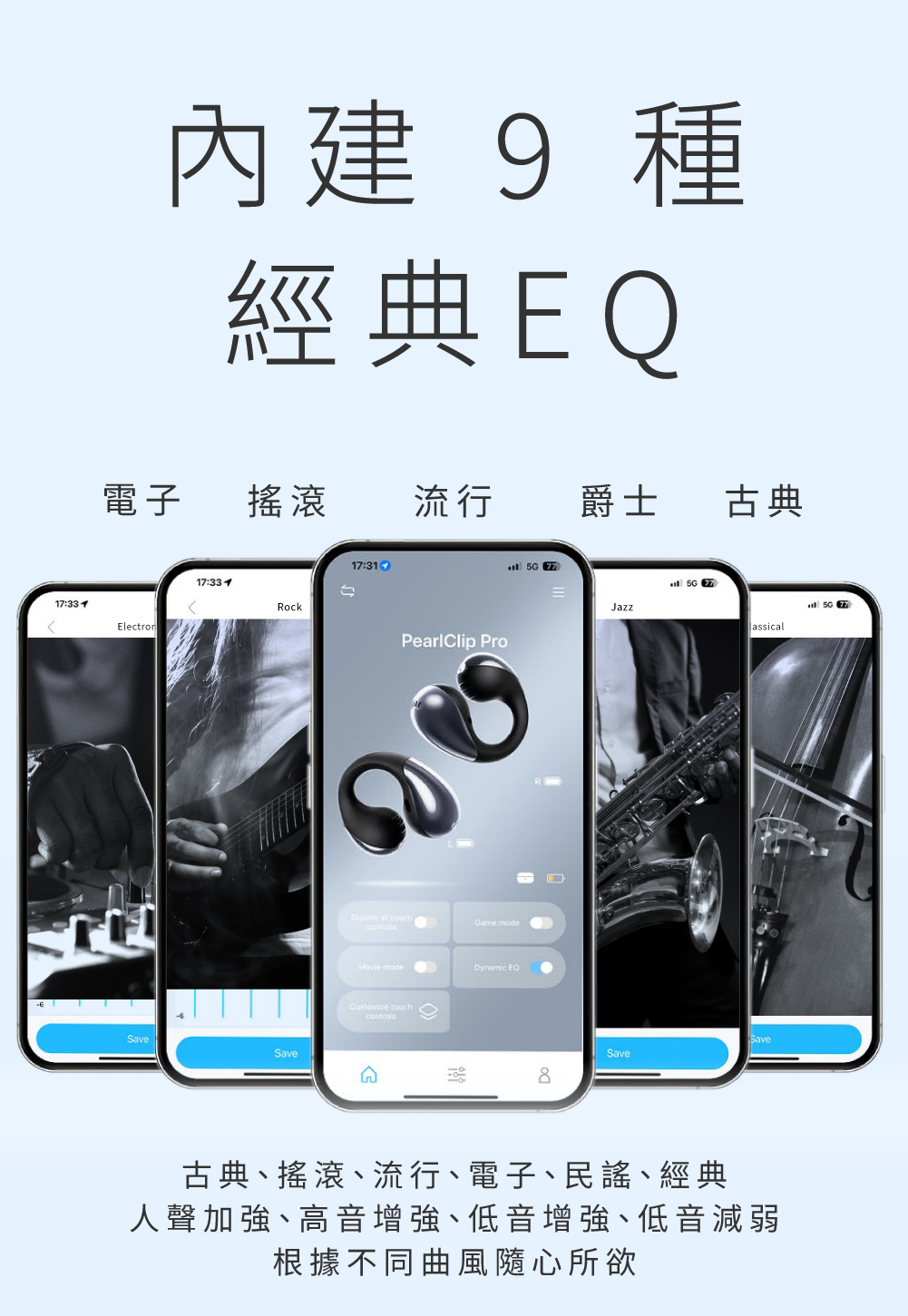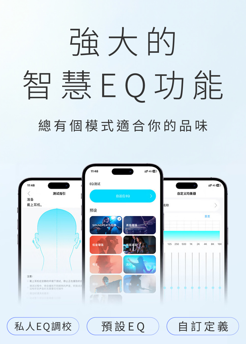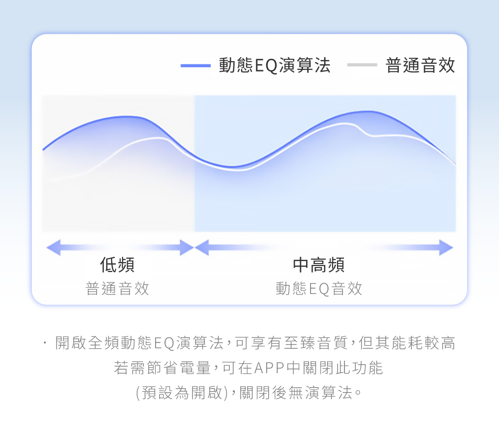 • APP內建EQ可自由調整,9種經典EQ+自定義模式,怎麼聽都合你口味!