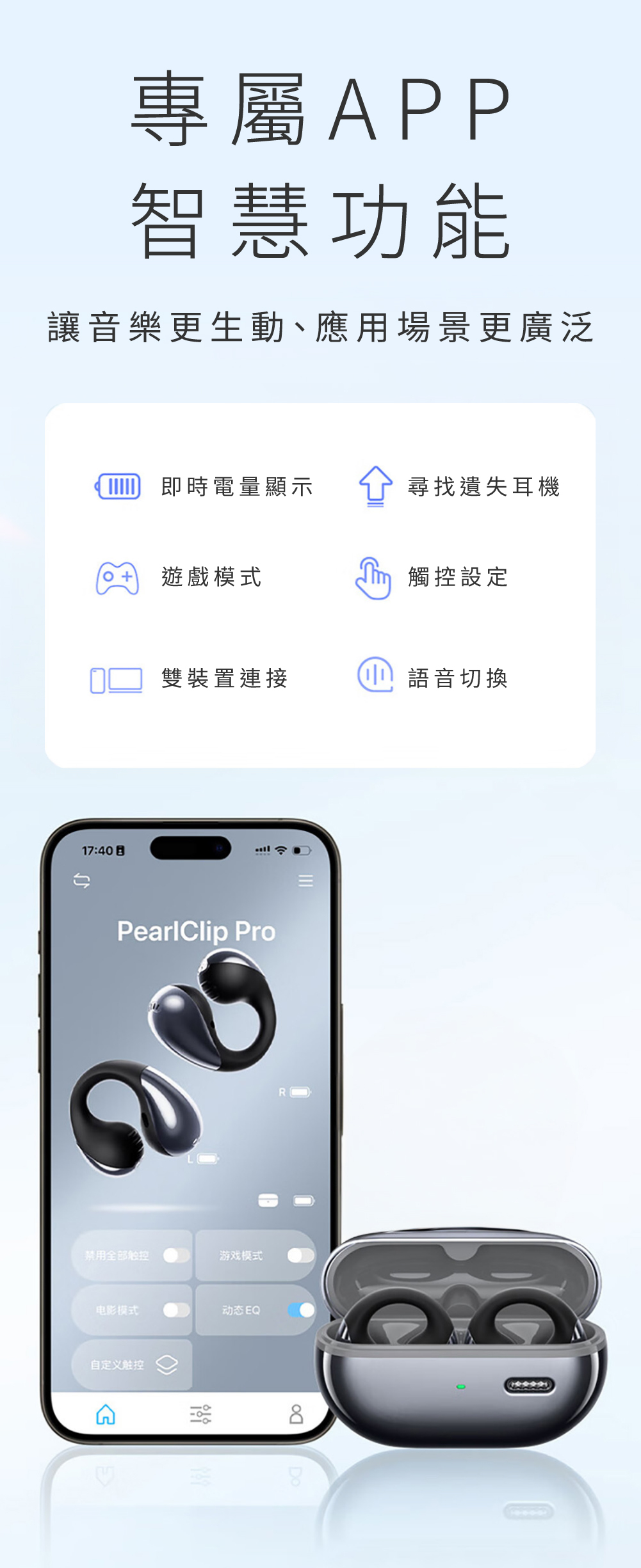 • APP支援:找耳機功能、EQ調整、觸控設定、電量顯示
