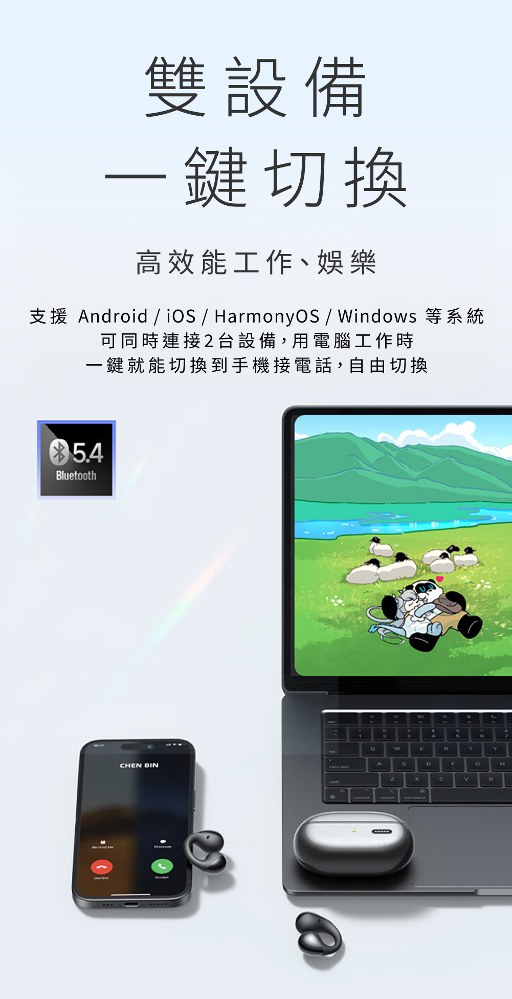 • 可同時連接手機與筆電,工作娛樂一鍵切換