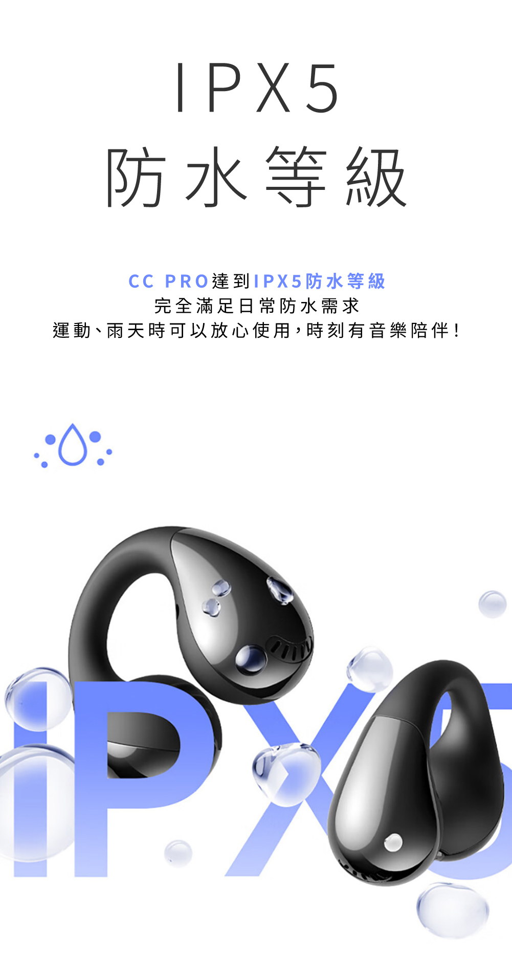 🔷 IPX5 防水認證,運動、下雨也能盡情享受音樂