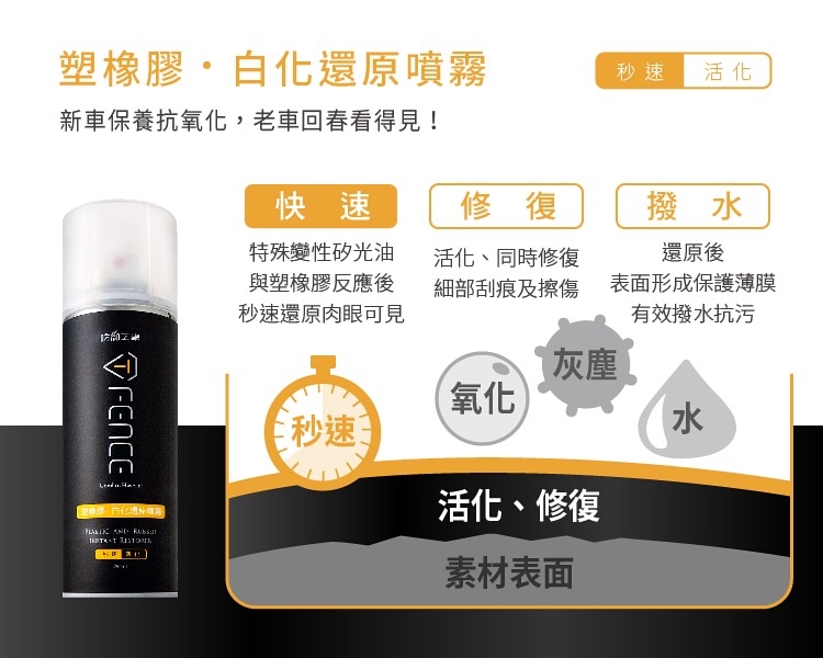 .不含石油溶劑、不侵蝕車漆及素材,秒速活化,要愛車煥然一新!