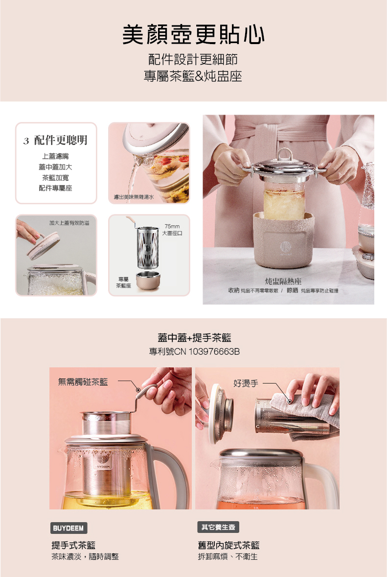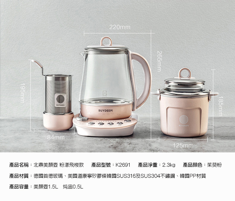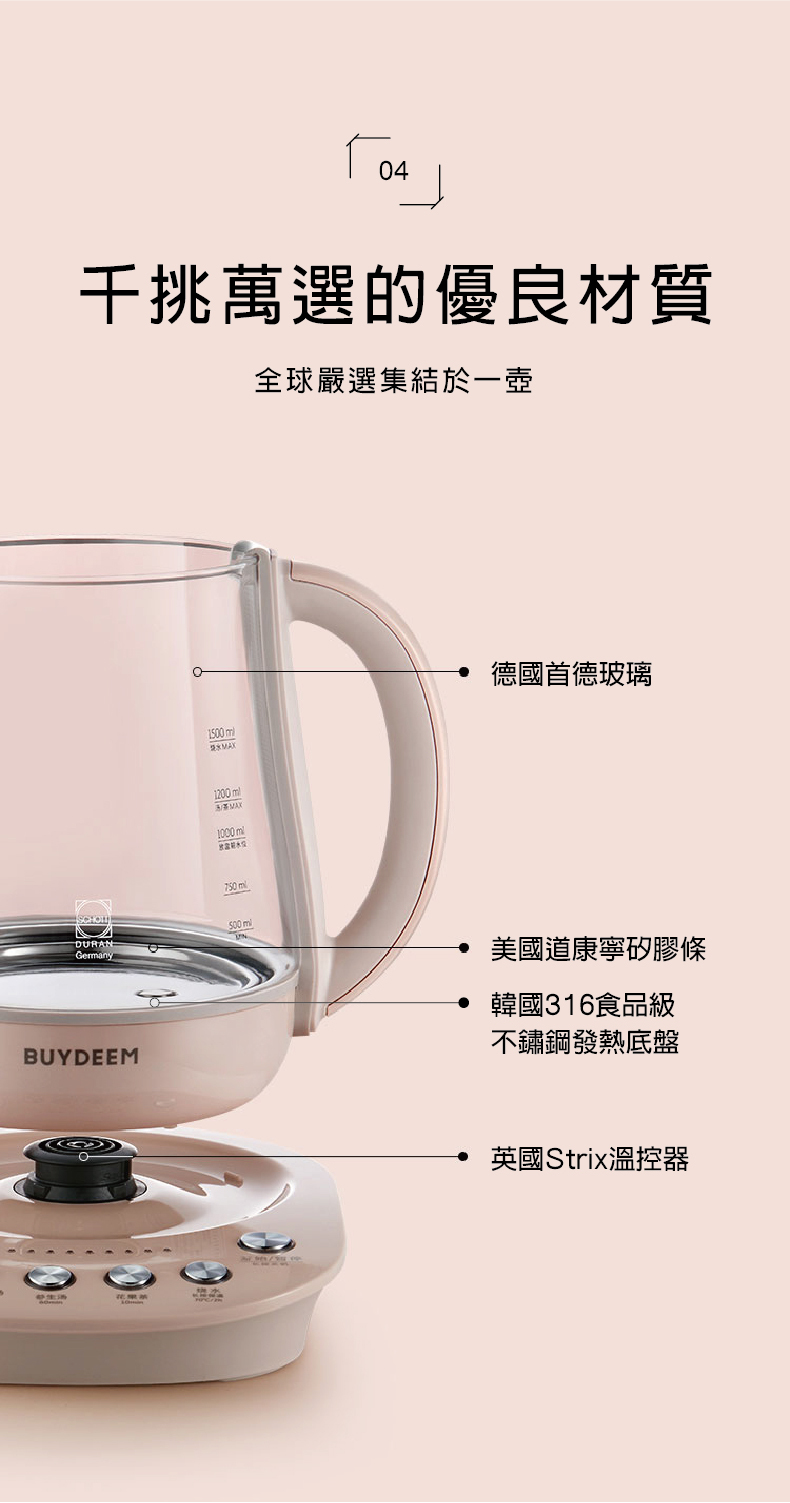 北鼎Buydeem,全球化智能溫控的廚電專家,以優異的生產技術、頂極的嚴選原料、智能的溫控科技、嚴苛的品質管控、全方面的需求規劃,設計出最適合亞洲飲食習慣的多功能烹煮壺,一鍵搞定繁複的營養學。