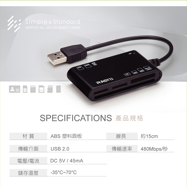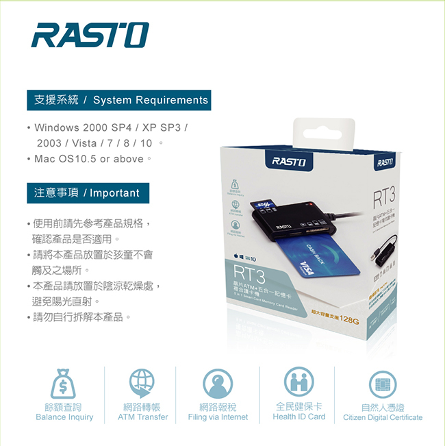 【RASTO】RT3 晶片ATM 五合一記憶卡複合讀卡機