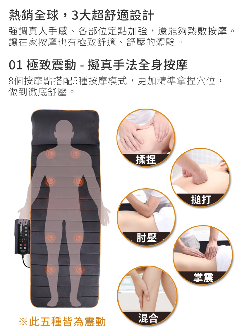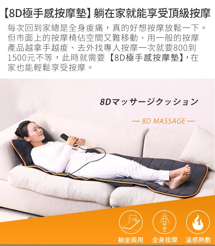 8D極手感按摩墊,讓你躺在家就能享受躺/坐兩用的頂級按摩!