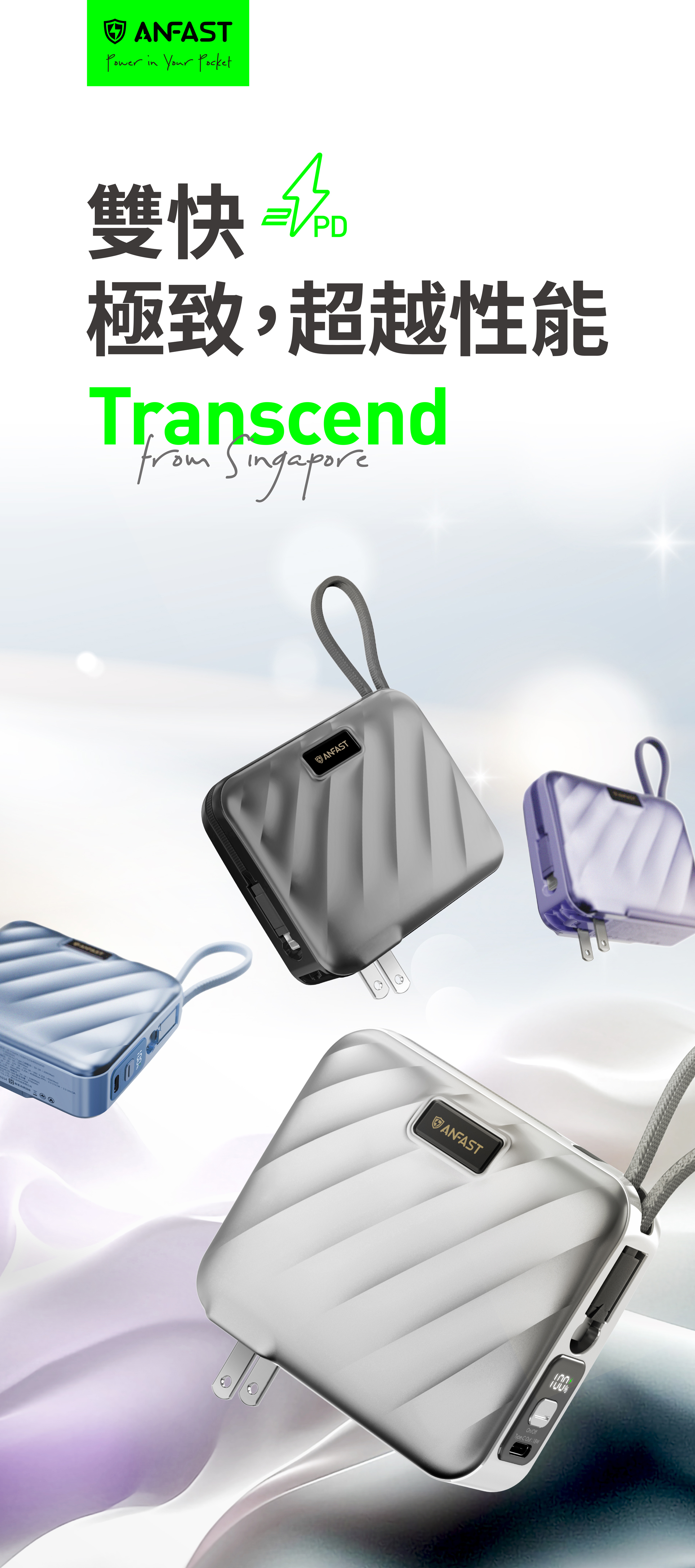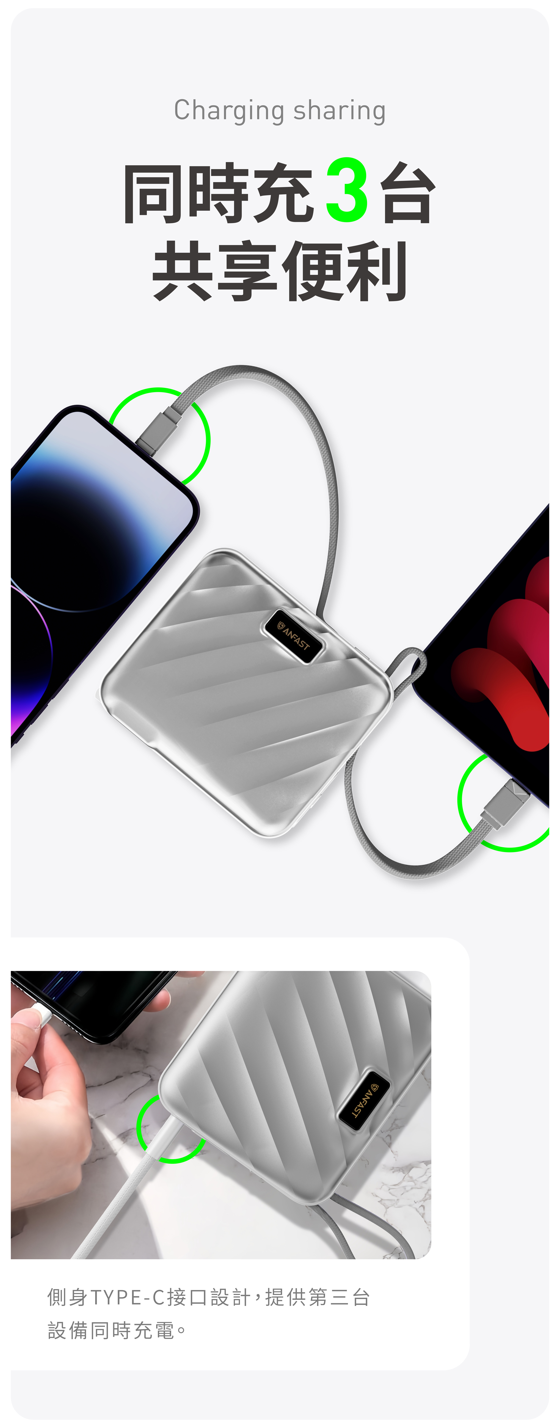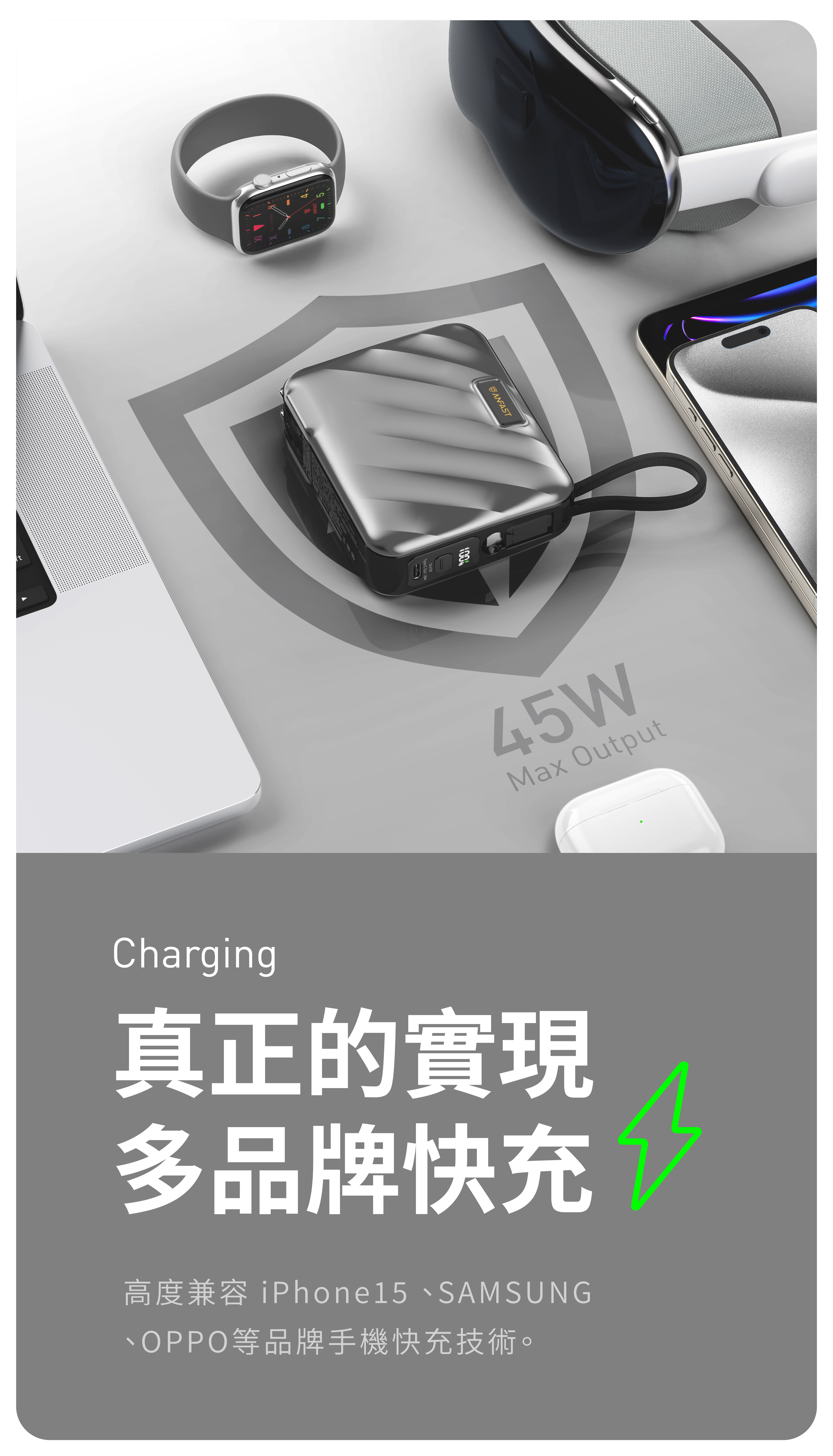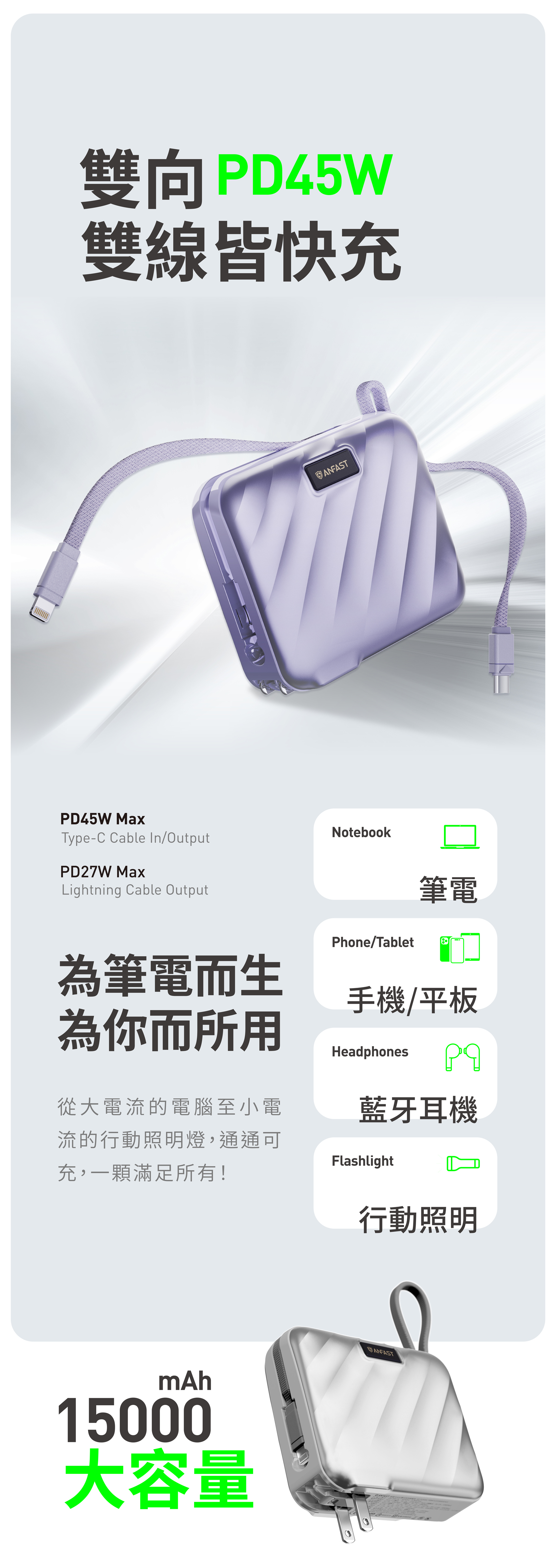 【ANFAST】AF-P1545X競電PD45w雙向快充線電源(15000mAh)