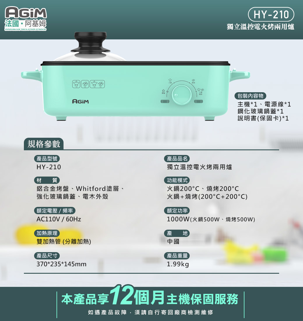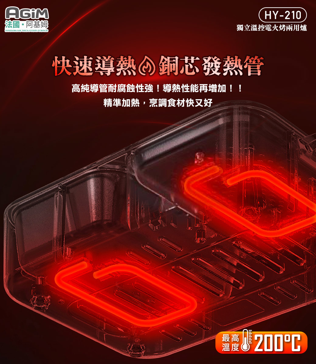 .功能模式:火鍋(200度C)、燒烤(200度C)、火鍋+燒烤(200度C+200度C)