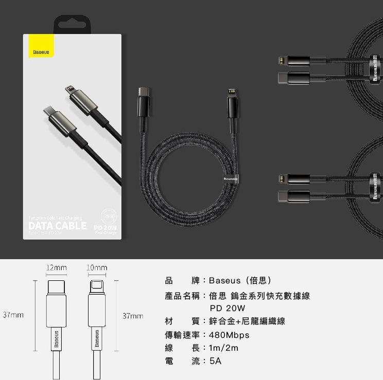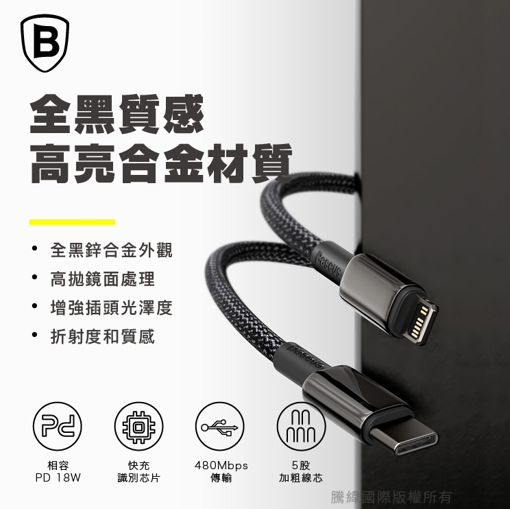【台灣倍思Baseus】蘋果20W快充 鎢金系列Type-C to Lightning PD充電線
