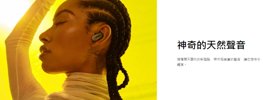 、更自然的聆聽體驗。音樂及其他音效會在前方及兩側呈現寬廣的聲音舞台,就像是您使用