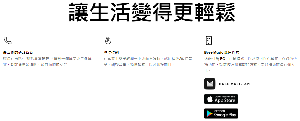 把您的聲音與同時間存在的背景噪音和風聲隔絕。除此之外,自我語音功能(在 Bose Music 應用