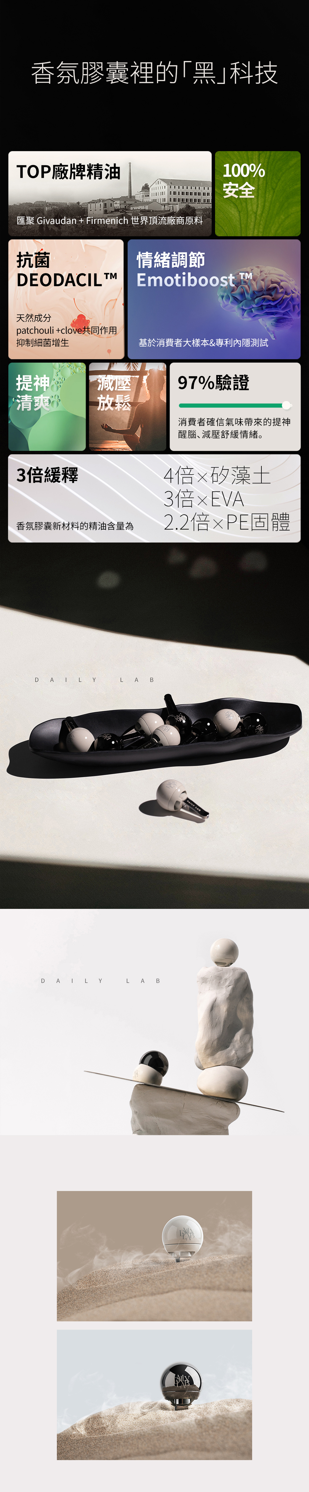 專利認證,更經97%使用者驗證,DAILY LAB 的氣味能帶來提神醒腦、減壓、舒緩情緒。