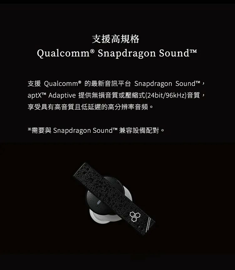 ●支援解碼 : SBC, AAC, Qualcomm@ aptXm、 aptXTM Adaptive