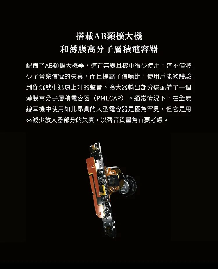 ●搭載AB類擴大機和薄膜高分子層積電容器