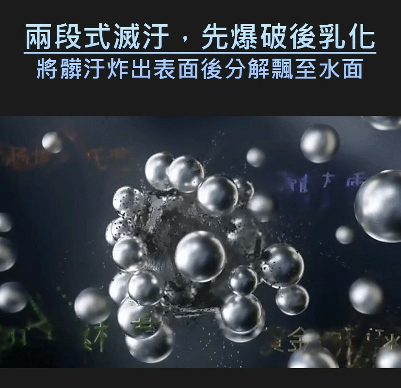 A1:商品是透過鏡面共震器發出超聲波產生肉眼不見的奈米氣泡,將附著髒污爆破去除哦。